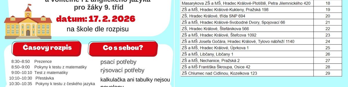 Z českého jazyka, matematiky a volitelně z anglického jazyka pro žáky 9.tříd